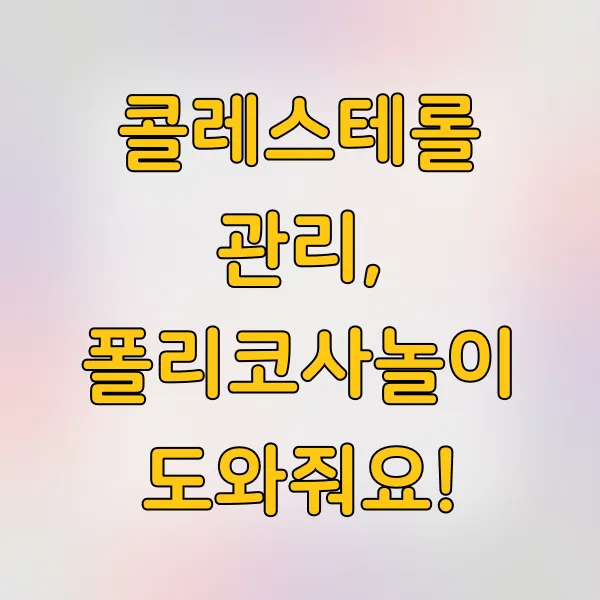 콜레스테롤 수치 때문에 걱정이 많으시죠? 폴리코사놀이 콜레스테롤 관리에 어떻게 도움을 줄 수 있는지, 쉽고 명확하게 알려드릴게요. 건강한 라이프스타일을 위한 필수 정보, 놓치지 마세요!