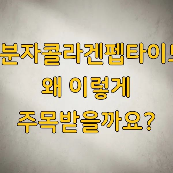 안녕하세요! 요즘 콜라겐 섭취하시는 분들 정말 많으시죠? 특히 '저분자콜라겐펩타이드' 라는 이름은 이제 어디서나 쉽게 찾아볼 수 있게 되었어요. 하지만 막상 제품을 고르려고 하면 어떤 점을 봐야 할지, 일반 콜라겐과는 무엇이 다른지 헷갈릴 때가 많더라고요.