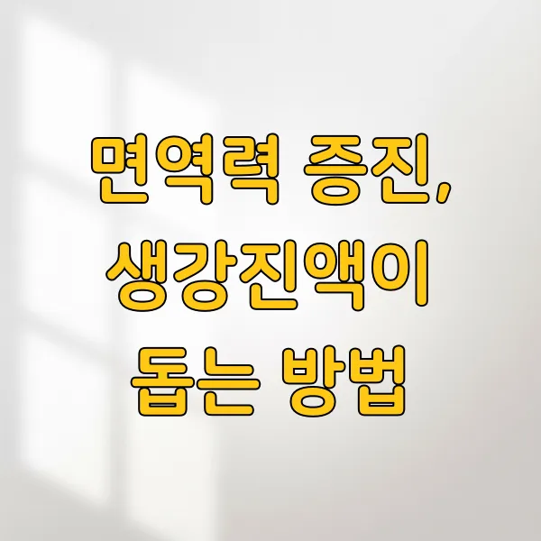 평소 면역력이 약하다고 느끼신다면, 꾸준히 생강진액을 섭취하는 것이 면역력 증진 에 긍정적인 영향을 줄 수 있어요. 특히 요즘처럼 건강 관리가 중요할 때 든든한 지원군이 되어줄 수 있겠죠?