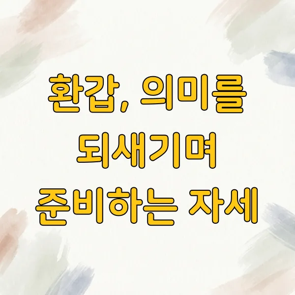 환갑은 단순히 나이가 드는 것을 넘어, 지난 60년의 삶을 돌아보고 새로운 60년을 설계하는 의미 있는 시간입니다. 띠별 특징을 이해하고 주의사항을 숙지하면 더욱 지혜로운 한 해를 보낼 수 있답니다.