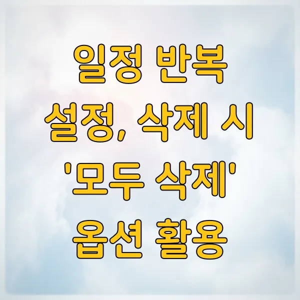 반복 일정을 삭제할 때는 '이번 일정만 삭제', '다음 일정부터 삭제', '모든 일정 삭제' 중 어떤 옵션을 선택하는지가 중요합니다. 본인의 필요에 맞는 옵션을 정확히 선택해야 예상치 못한 일정 누락을 막을 수 있어요.