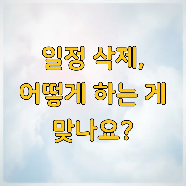 Q2: 반복되는 일정을 삭제하고 싶어요. 어떻게 해야 안전한가요? A2: 반복 일정을 삭제할 때는 '이번 일정만', '다음 일정부터', '모든 일정' 중 어떤 것을 삭제할지 신중하게 선택해야 합니다. 화면에 나타나는 옵션을 꼼꼼히 확인하세요.