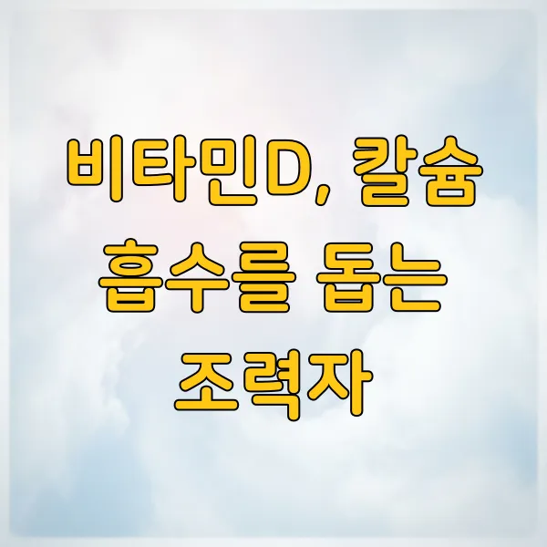 아무리 칼슘을 많이 섭취해도 비타민D 가 부족하면 우리 몸은 칼슘을 제대로 흡수하지 못한답니다. 비타민D는 칼슘과 인이 뼈에 잘 결합하도록 도와 뼈를 튼튼하게 만드는 필수적인 영양소예요.