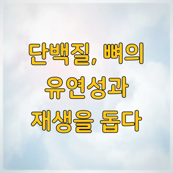 뼈는 단단하지만, 그 안에는 콜라겐 이라는 단백질 성분이 있어 유연성과 탄력을 유지하게 해 줘요. 단백질은 뼈의 구조를 형성하고 손상된 뼈 조직을 복구하는 데 필수적인 역할을 합니다.